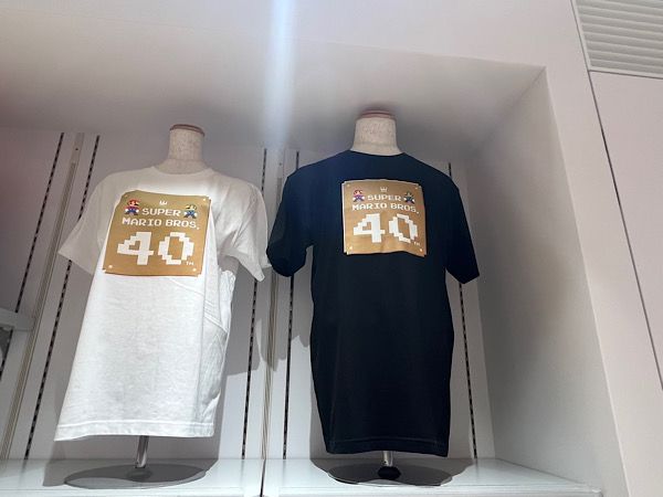 『スーパーマリオブラザーズ』40周年のロゴをあしらった特別なデザインのTシャツも新登場。ドンピシャ世代の方々、これは要チェックです。