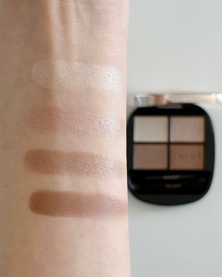 目もとに透明感をもたらし立体感を演出するスキントーンのアイカラーパレット。01はローズの血色感が肌にとけ込むベージュブラウンパレット。