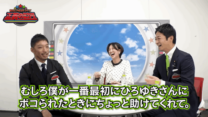 「距離が縮んだらいいなと…」と話す東留伽アナに、西田氏は「よく(藤田氏と)ご一緒させていただいて」とコメント。藤田氏は「僕らは毎回共演和やかな感じですよね。むしろ、僕が一番最初にひろゆきさんにボコられたときにちょっと助けてくれて」と裏話を明かした。