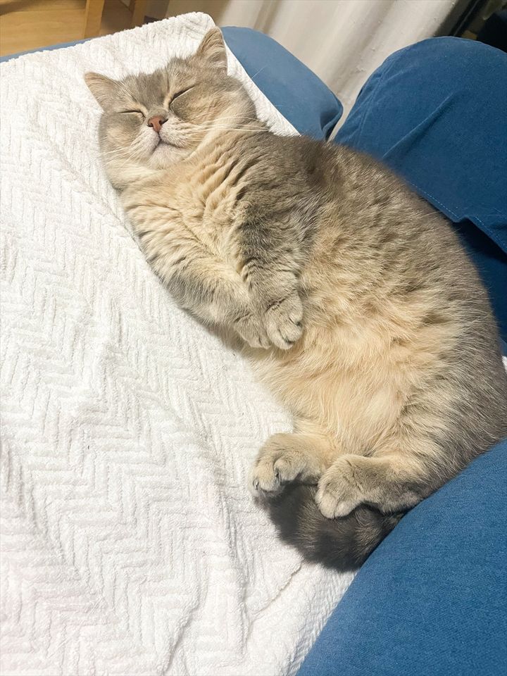 おてて揃えてスヤスヤ。ネコの寝姿が話題に「安心して眠れる事は幸せ」「かわいすぎますね~天使さんです」