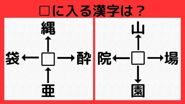 【漢字パズル】□に入る漢字はなんでしょう? □縄、□酔、亜□、□袋・・・!?