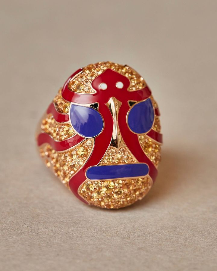 旅やアートからのインスピレーションをもとに、アンティーク素材やヴィンテージの要素、希少な技法を自在に掛け合わせるフランチェスカ・ヴィラ。ウィットに富んだポップな感性を重ねたジュエリーは、すべてが一点もので唯一無二のストーリーを宿している。