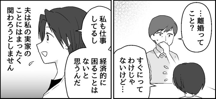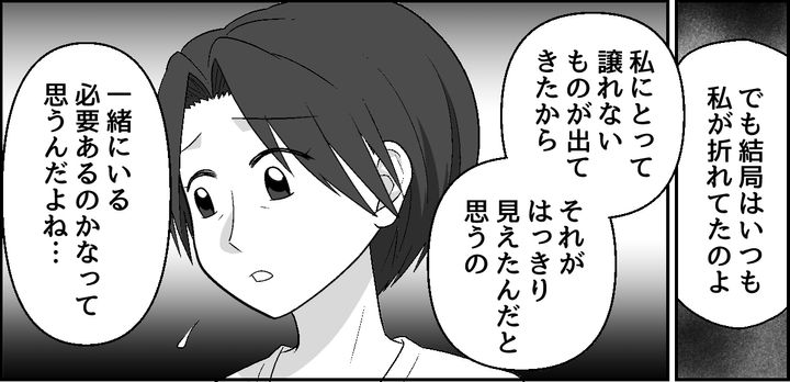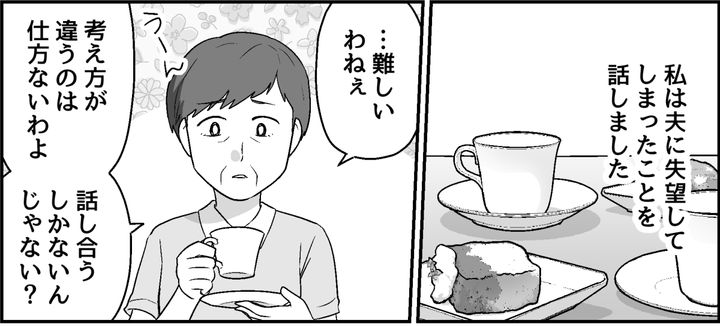 私は母に、夫との未来が見えなくなってしまったことを打ち明けます。今思えば、夫婦の話し合いなんて本当は一度も成立していなかったのです。夫は決して譲らないし、結局は私が折れて合わせることでこれまでやってきました。