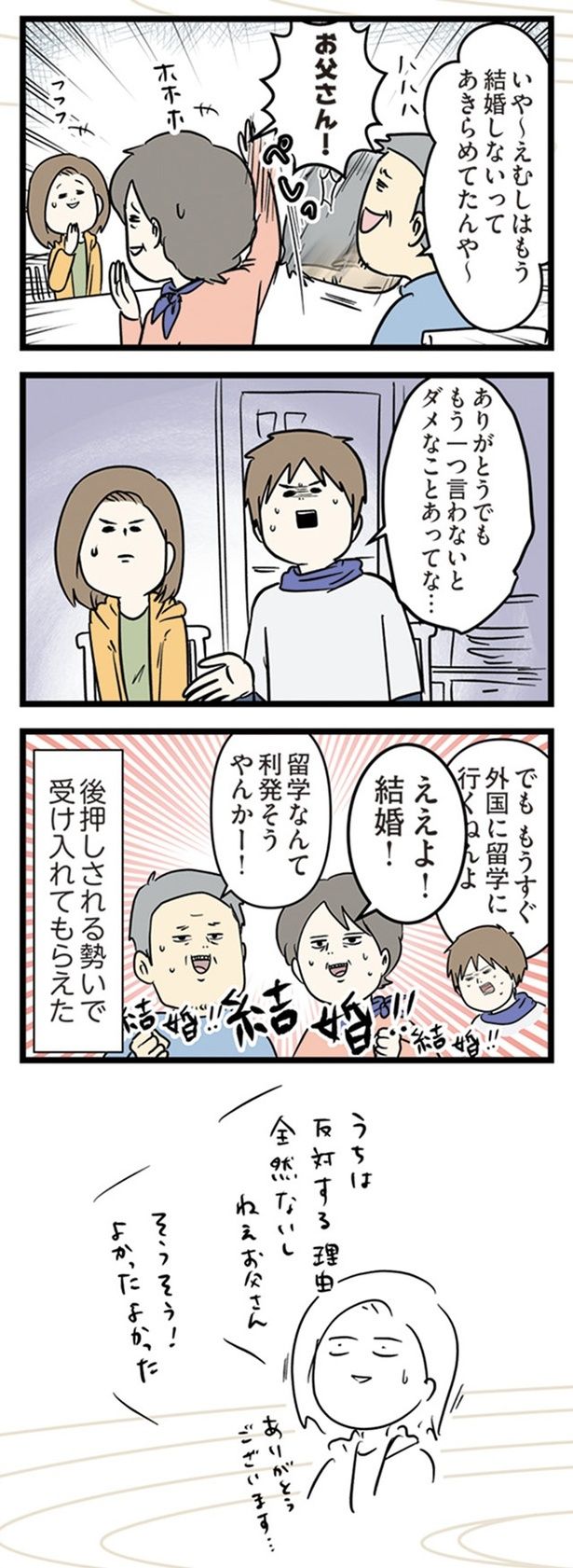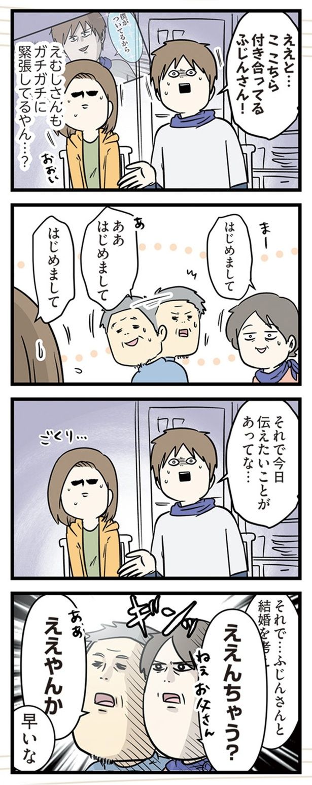 3. 彼の家に結婚の挨拶へ。到着前は頼りになる彼だったのに、いざ両親と対面すると?/付き合って0日で結婚を決めた2人の話(上)