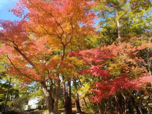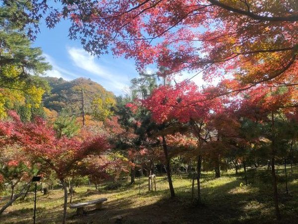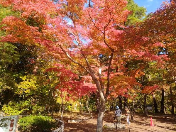 公園全体が赤、黄色、オレンジのグラデーションに染まり、華やかで迫力のある景色が特徴です。これほど色彩豊かな紅葉の饗宴を楽しめるのは、秩父の紅葉スポットの中でも随一と言えるでしょう。