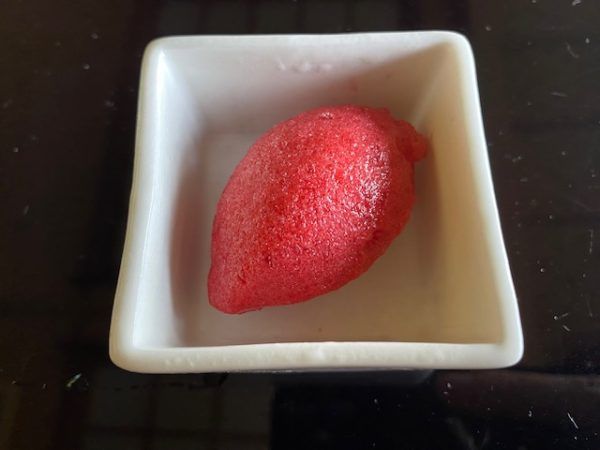 カシスのシャーベット。お口直しにも満足しながら、さらにメインを心待ちに♪