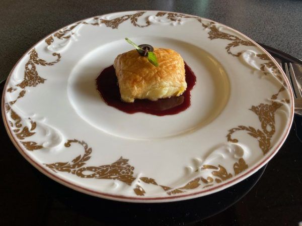 その日のメインは、白身魚のパイ包み 赤ワインソース。サクサクパイの中に函館のおいしい食材、懐石で楽しめる幸せ♪