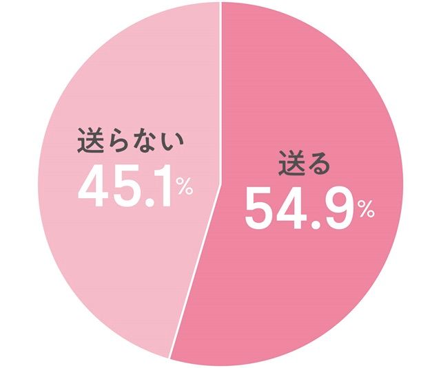 「例年、LINEで新年のあいさつのメッセージを送りますか?」とアンケートで質問したところ、54.9%の人が「送る」という回答でした。