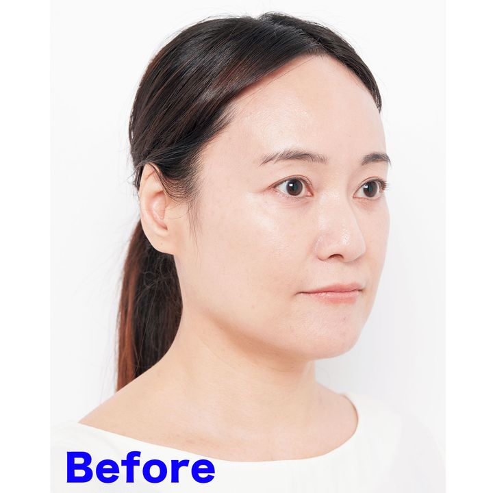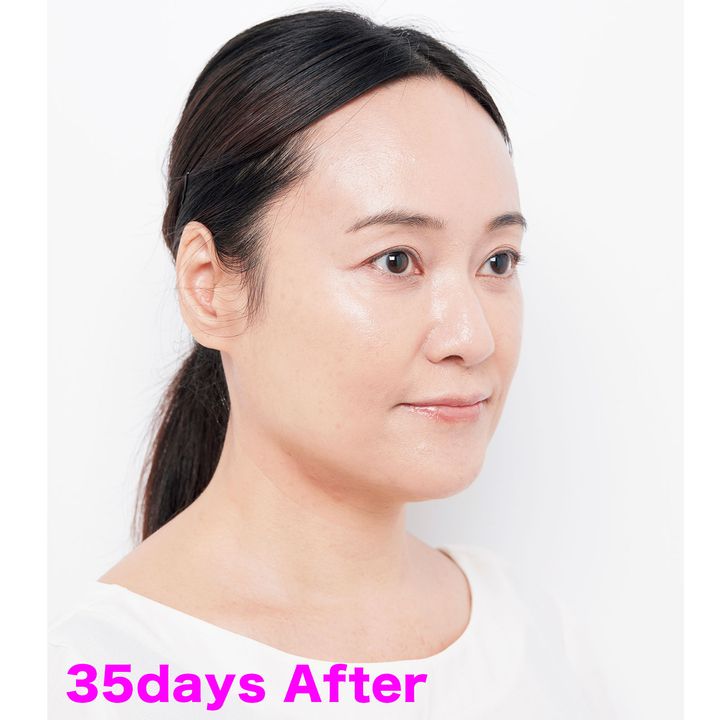 ほぼ1個使い切り!頰が丸く立体的に。全体的に引きあがって中高な印象になり、フェイスラインもすっきり引き締まりました。「形状の変化はもちろん、なめらかでツヤのある、毛穴の目立たない肌にグレードアップしたのが嬉しい!」