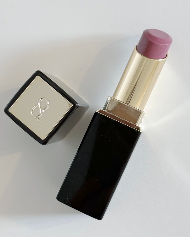 濃密な艶膜でむっちりと立体感のある魅惑的な唇に。13は抜け感を演出するモードなダスティパープル。 モイスチャー グレイズ リップスティック 13 ¥5,830(セット価格) (SUQQU)