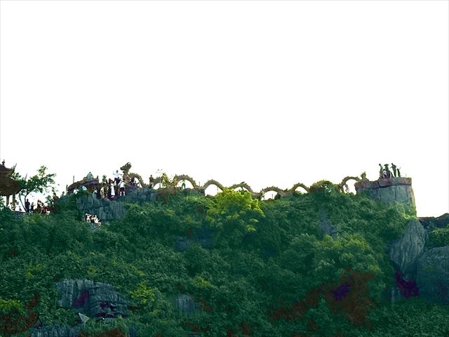 山頂は小さな展望スポットがあり、かなりの人でごった返していました。龍のモニュメントは展望スポットより少し高い場所にあります。