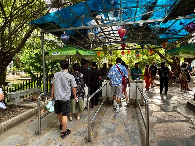 入口で入場料100,000 VND(約600円)を支払うと、登り口まで少し歩きます。飲食ができるお店や水が買える自販機(日本円で100円強)もありました。飲み物がない人はここで購入しておくといいと思います。自販機はおつりが出ません。