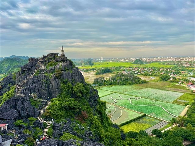 ムア洞窟のあるニンビンでは、時間の流れがゆるやかに感じられ、ハノイやホーチミンとは異なるベトナムの魅力に出合えます。500段の階段を登りきった山頂で見たのは、言葉を失うほど神秘的で心が揺さぶられるような絶景でした。