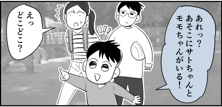コウジさんの奥さんはこのことを知っているのだろうかとモヤモヤしていたら、コウジさんとほかのママさんが子どもを連れて少し遠めの公園にいる姿を目撃しました。