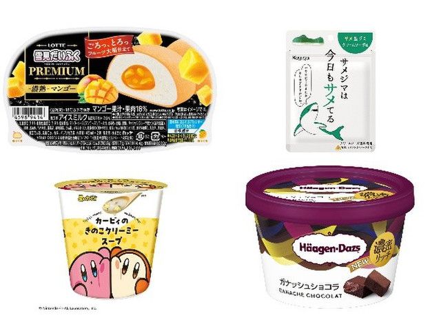 今週新発売のクリーミーな食べものまとめ!『雪見だいふくPREMIUM 濃熟 マンゴー』、『サメジマは今日もサメてる クリームソーダ味』など♪