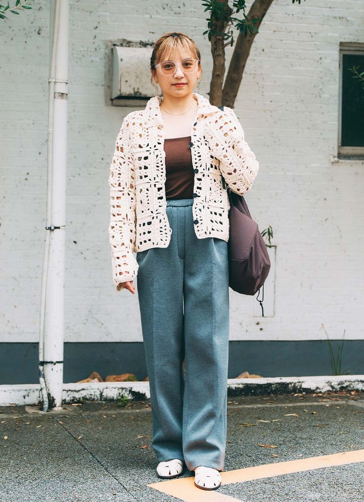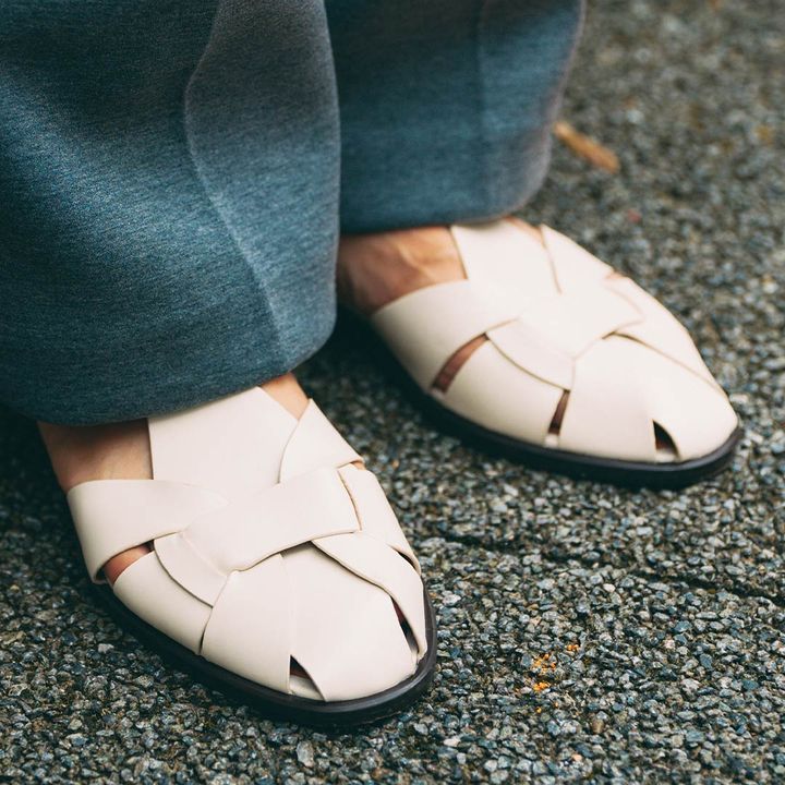 つま先が隠れてるサンダルシューズは、程よい上品見えを叶えてくれる。ホワイトカラーをセレクトして、軽やかな足元にアップデート!