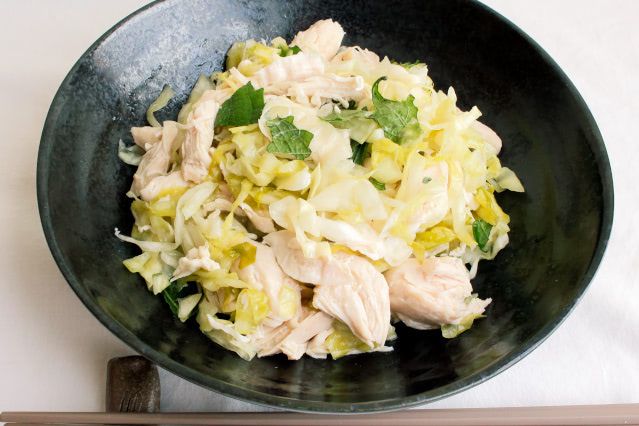 ささみはふんわり、キャベツはシャキシャキ。軽い酸味のさっぱり和え物に