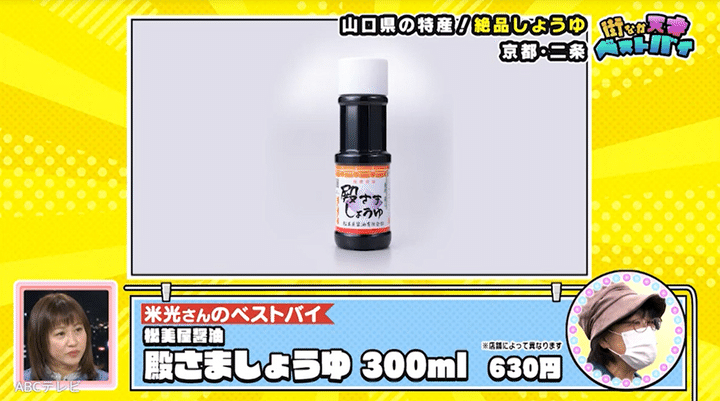 もう1人の女性が、山口県萩市にある「松美屋醤油の殿さましょうゆ」がベストバイだと語ると、同級生たちは納得の表情! 殿さましょうゆは、山口県民ならどこの家庭でも常備しているみたいです。甘口な殿さましょうゆは、刺身につけるのがおすすめで、とにかく「おいしい!」の一言に尽きるのだとか。
