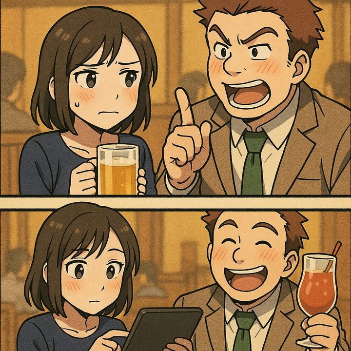 「アルコール飲み放題なんだから飲めよ!」と強制する先輩。注文履歴を見て気づいた過ちとは【短編小説】