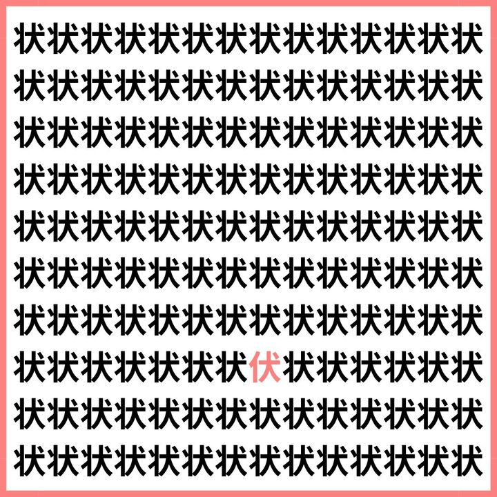 状の中に伏、気づける?【1文字だけ違う】漢字間違い探しで脳トレ、何秒で見つかる?