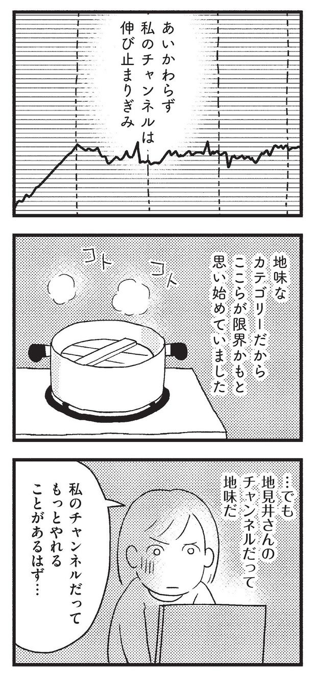 デイチューブは私たちが自由になるための唯一の方法だった――。職場でも家庭でも頑張りが認められず、自分に自信が持てずにいた主婦・山田あずさ。ある日始めた「デイチューブ」の動画配信で、自分の料理が認められ、少しずつ配信活動にのめり込んでいく。娘を出演させた動画の評価が高く、登録者数も増加することに気づいたあずさは、自分をないがしろにする夫と別れ、自立するためにも、ついには娘の顔出しまで考えるようになり――。動画配信によって歪んだ親子の関係性を描くセミフィクション『子どもをネットにさらすのは罪ですか?』を好評につき再連載いたします。