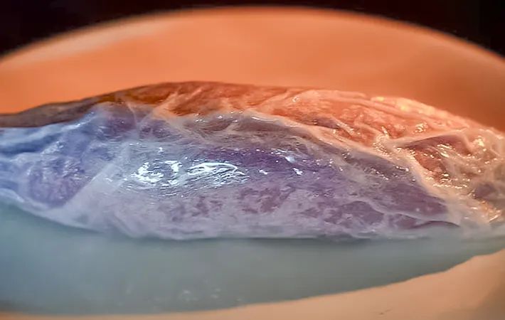 こちらも割ってみました。どちらも粗熱が取れたら、冷蔵庫で3時間以上冷やします。