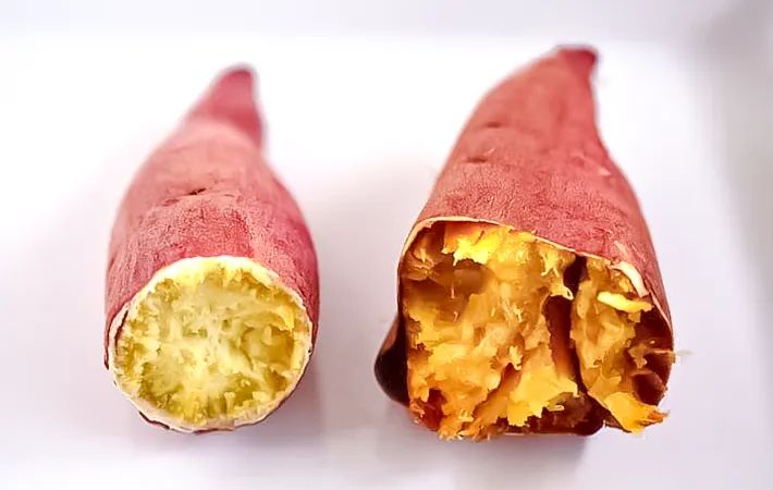 電子レンジ加熱では急激に内部の温度が上がり、β-アミラーゼがすぐに働きを失ってしまうため、あまり甘くなりません。