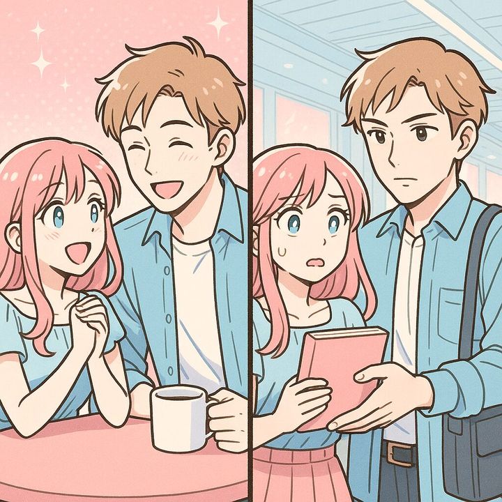 当日、待ち合わせ場所に現れた彼は、写真通りの穏やかそうな人でした。「はじめまして」と笑う顔にホッとして、私たちは近くのカフェに入りました。