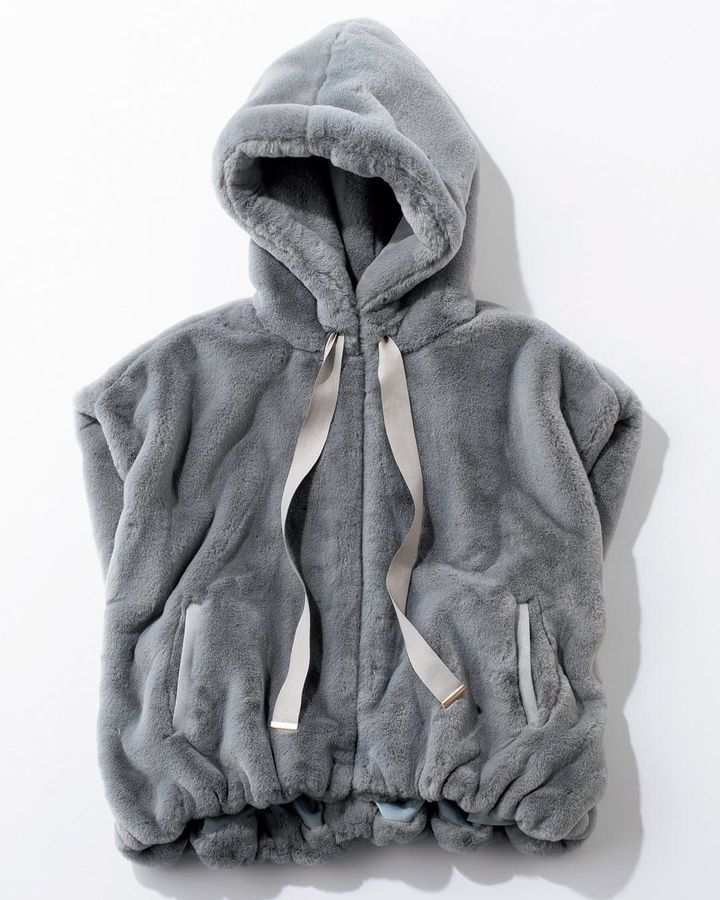 ②ふわふわフードで着映える!コートの上からも羽織れる大人気ジレ
