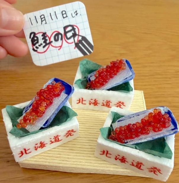 今回は、北海道の秋の風物詩・生すじこといくらのしょうゆ漬けのミニチュアを紹介しました。冬の気配が訪れてきた北海道ですが、季節ならではの旬の食を楽しめるのは、北海道最大の魅力と言えますよね。