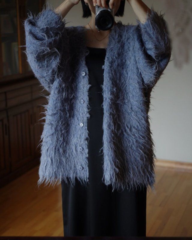 フェザーのような毛足の長いカーディガンも、クリスマスコーデに取り入れるととっても可愛い! 合わせる他のアイテムはスムースな素材感を選ぶことで、よりふわふわな質感が引き立ちます。