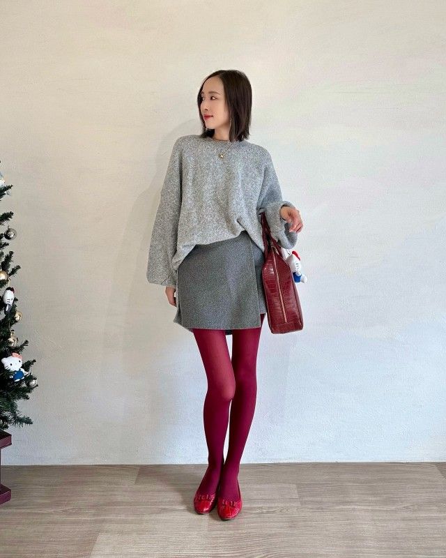 クリスマスには、タイツとシューズをレッドでまとめたこんなスタイリングもおすすめです。シンプルなお洋服に合わせれば、カラータイツも意外とコーデに取り入れやすいんです。シーズンムードを楽しむレッドを取り入れるアイデアとしてぜひ覚えておきたい!