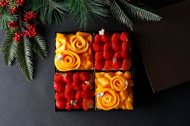東京・表参道駅直結のカフェ&ダイニング「ザ ストリングス 表参道」から、宝石のような美しいビジュアルとフレッシュなフルーツの味わいを楽しめる、目にも舌にもうれしい特別な限定ケーキがお目見え。赤はいちご、黄色はマンゴーの2 種のケーキが市松模様のように並び、ケーキはほんのり甘くしっとりとした食感のスポンジに。軽やかな口当たりのクリームを重ね、主役であるフルーツの甘みと香りを一層引き立て、新年の食卓が華やかに!