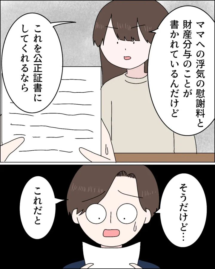 3. 「浮気の慰謝料と財産分与に応じるなら離婚に協力する」娘から告げられた条件に思わずたじろぐ。父の浮気|ママ広場マンガ