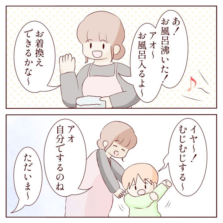 アオ君をお風呂にいれようとしているタイミングで、リク君が帰ってきました。