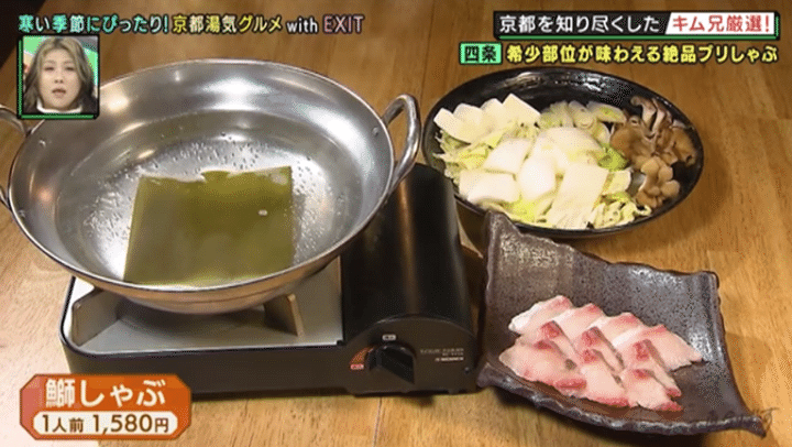 3軒目は、地下鉄四条駅にほど近いブリ料理の専門店。キム兄が自身の誕生日に、わざわざ「自分で予約して」訪れたという名店自慢の、ブリのおいしさを味わい尽くす贅沢湯気グルメがEXITを大興奮させる!