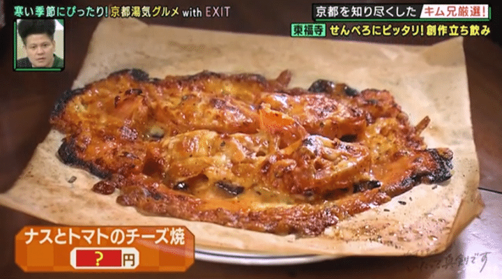 2軒目には、キム兄の「とっておき」が登場! 東福寺の近くにある立ち飲み屋さんなのだが、実はこの店のオーナーは、なんとキム兄の小学校からの同級生。気軽に飲める雰囲気はもちろん、おいしいと評判の創作料理に惹かれ、キム兄も足繁く訪れているという。そんなこちらの湯気グルメはチーズがとろけるイタリアンな看板メニュー!リーズナブルすぎるお値段にりんたろー。も「安っ!」と驚がく!?