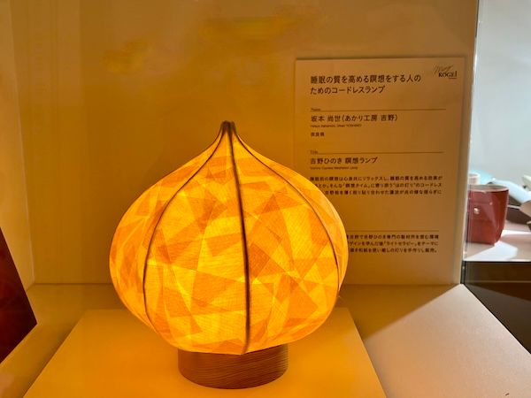 ツリーの点灯式に登場された俳優の奈緒さんがオーダーされたのは、自身の地元である福岡の伝統工芸品“八女提灯”を現代風にコンパクトなインテリア照明に変身させたミニ提灯(製作:シラキ工芸)。「日本の国花である菊を一つずつ違う花や葉の美しさを手書きで描いた」というイラストが可愛らしく、「家に帰った時に幸せを感じるホッとする灯り」というご自身の感想に共感。伝統工芸だけど決して古さはない職人技を感じました。