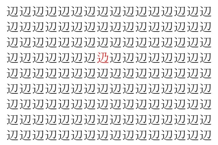 2. 【脳トレ】「辺」の中に紛れて1つ違う文字がある!?あなたは何秒で探し出せるかな??【違う文字を探せ!】
