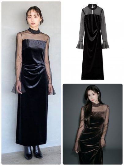 動くたびにキラキラと艶めくツヤ感が美しいベロア素材×素肌を覗かせるシアー感が、大人の魅力を引き出します。