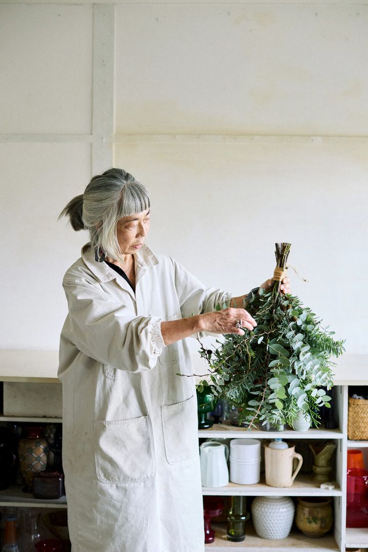 いしむら・みかこ/東京・南青山のアトリエで小数制の花教室を主宰するほか、ファッションやライフスタイルショップの装飾花を手がける。ワークショップの出店やオンラインショップ〈花瓶専門店〉を展開するなど、花の魅力を広める〈緑の居場所デザイン〉を主宰。料理雑誌や書籍のテーブルスタイリストとしても活動。リバティプリントやヴィンテージの布を使いオリジナルエプロンを製作する〈エプロン商会〉をディレクターの滝本玲子氏と共に手がける。