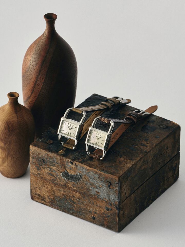 コンパクトなスクエアケースと、細いレザーベルト。ヴィンテージらしい上品なサイズ感が、手元をすっきり見せる。普段使いできる、クラシックな一本。