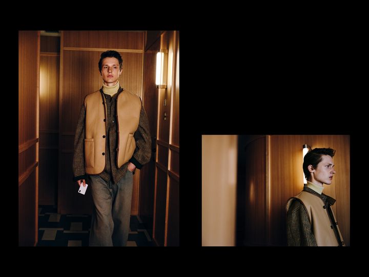 Vest ¥132,000(CAWLEY)/Jacket ¥264,000(Chato Lufsen)/Knit top ¥17,000(FOLL)/Pants ¥33,000(FOLL)/Shoes ¥96,800(LUCCHESE)
