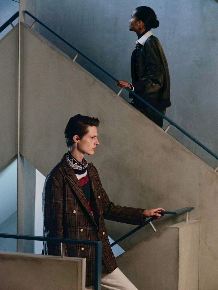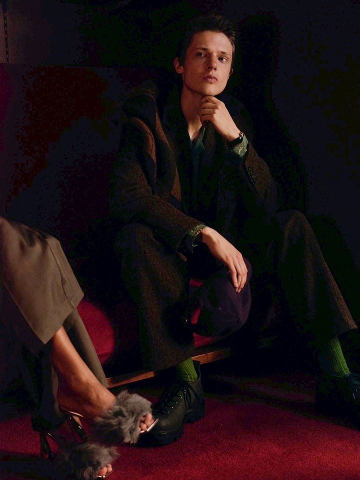 Knit top ¥66,000(NOAH)/Jacket ¥209,000(NOAH)/Shirt ¥49,500(KARTIC RESEARCH)/Pants ¥99,000(NOAH)/Watch ¥1,320,000( VINTAGE CARTIER)/Shoes¥82,500(PARACIA )*Womens Sandal ¥198,000(PAUL ANDREW)