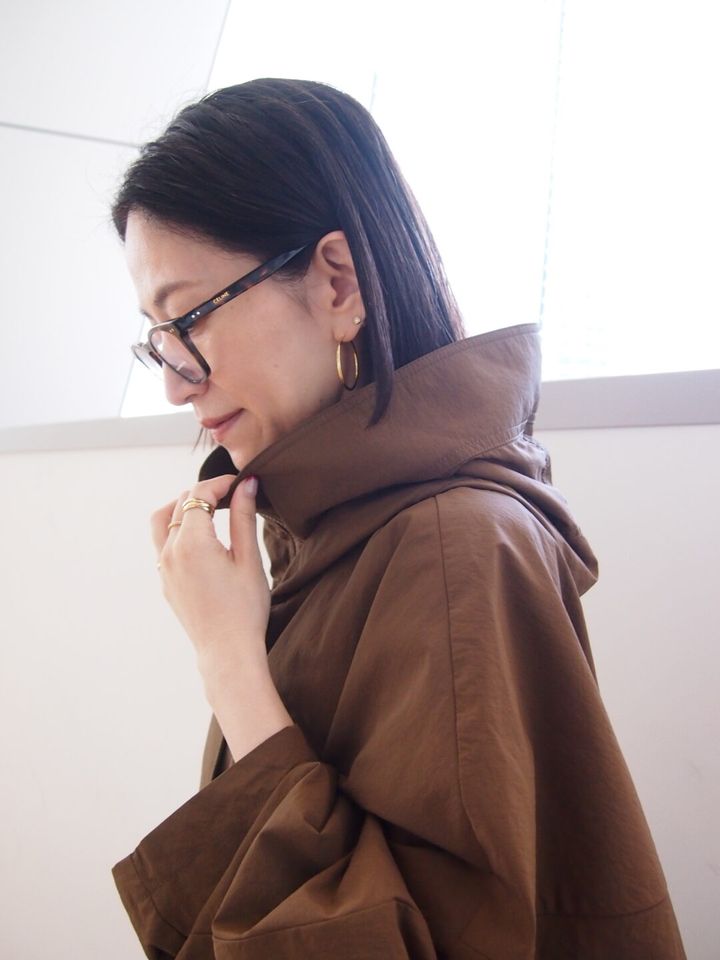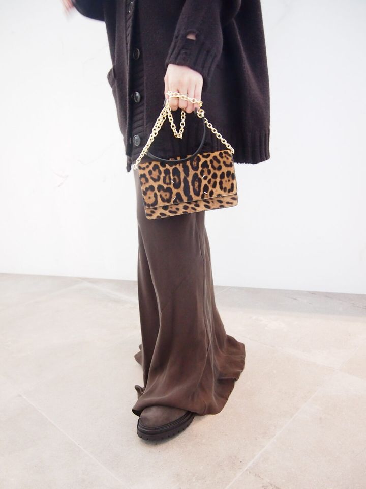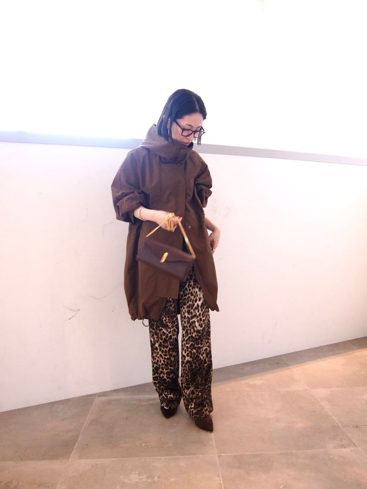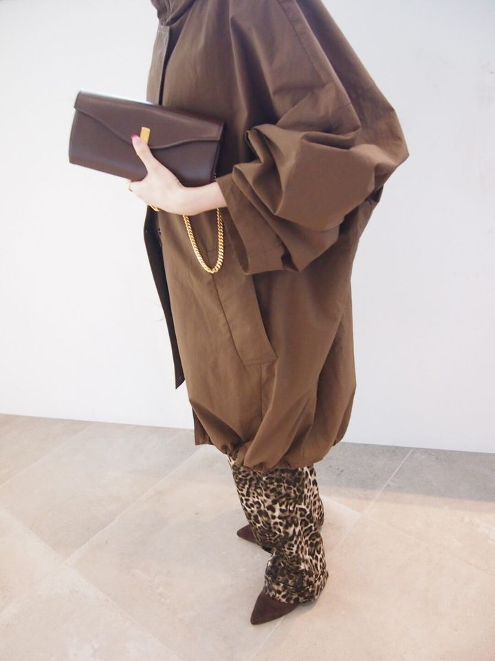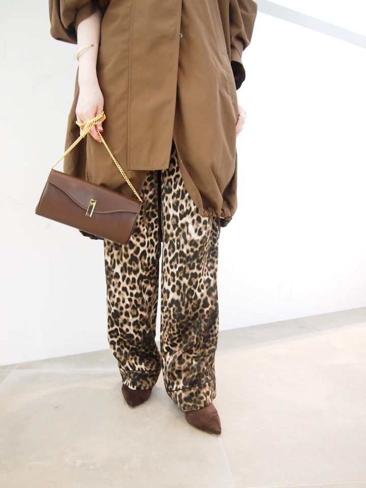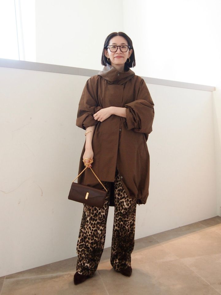 やっぱりレオパードが好き!今年はレオパードをブラウントーンで合わせたい!モダンなレオパード柄はブラウンで合わせる事で柔らかい印象にしてくれるので取り入れやすい。LIBERADD のアウターはハイネックのデザインが顔周りを華やかにしてくれる。