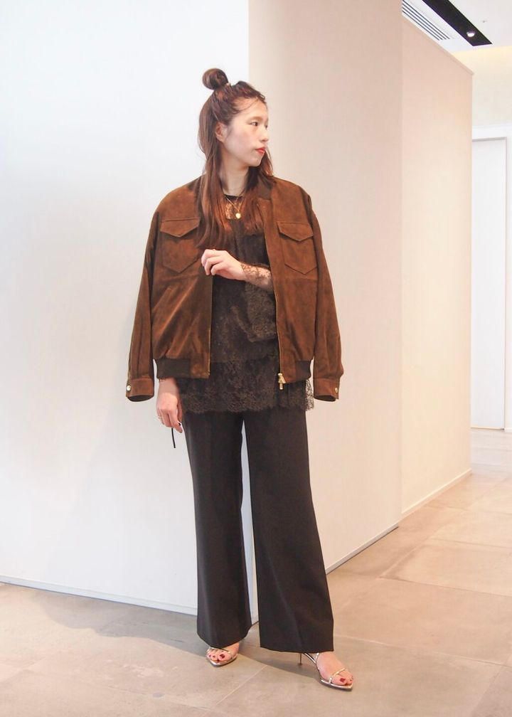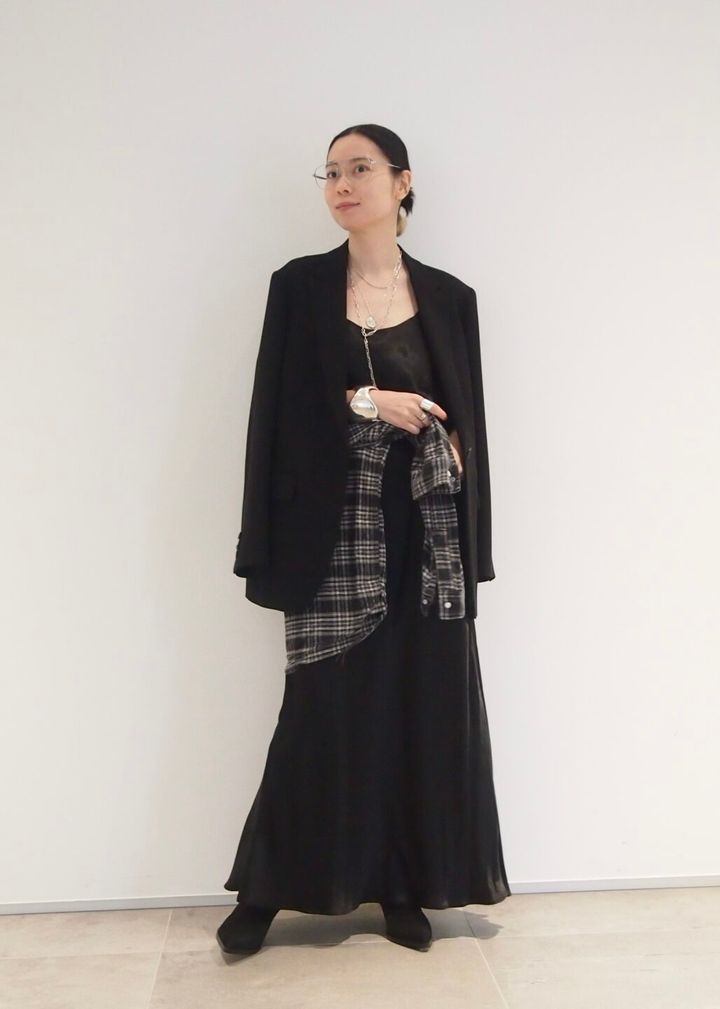 今年はサテンの気分。AP STUDIOのサテンシリーズは地厚な生地感のため秋冬のお洋服と合わせても頼り甲斐と存在感のあるアイテムです。スタイリングはセットアップをベースにモダンなジャケットと綺麗になりすぎないようにチェックシャツで外したコーディネートにしました!