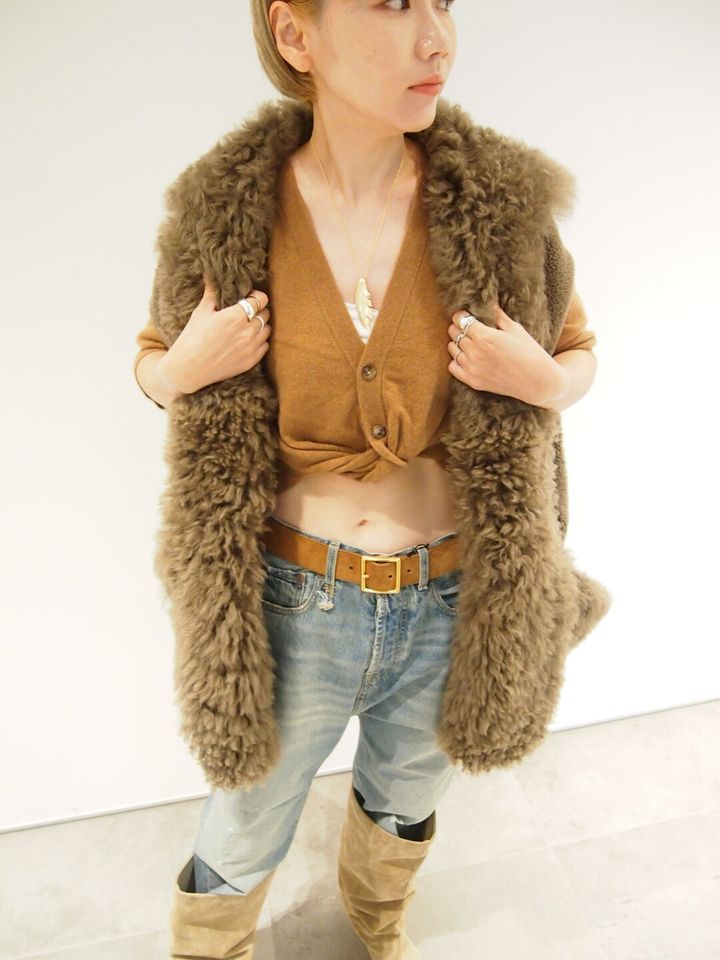 GRUNGE MIXが好みで気分。大好きなR13を中心にスタイリングスタイリングしました!グランジファッションには欠かせないデニムとブーツをポイントにタフでカッコ良さもありながら柔らかなカシミヤ混ショート丈ニットで肌見せ。LAPPARTMENTの秋冬には欠かせないBLANCHA MOUTON VESTを羽織った先取りスタイリング!ヘアスタイルも変化させながら楽しんでます!