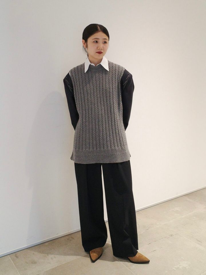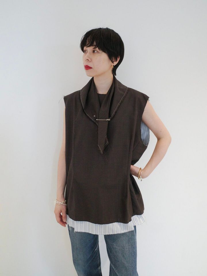 jacket ¥181,500- / sleeveless tops ¥55,000- / scarf ¥28,600-