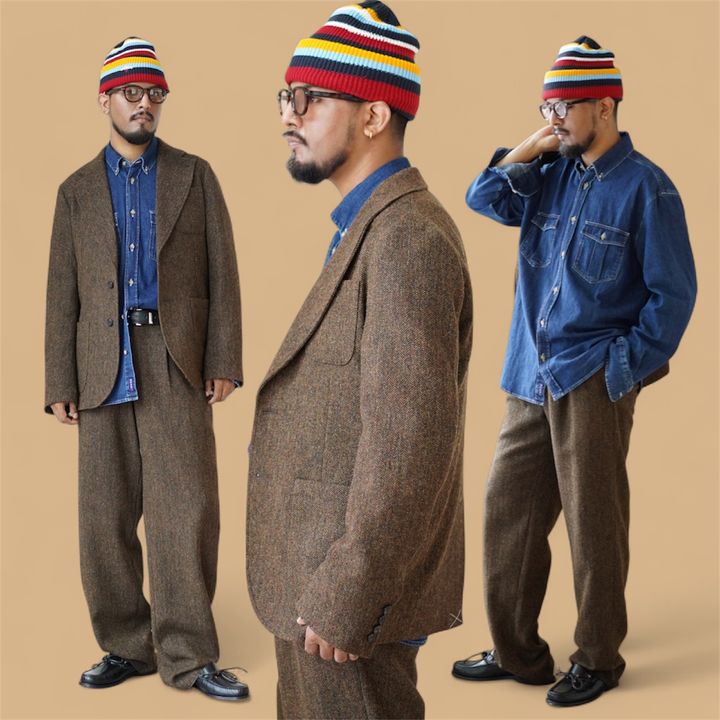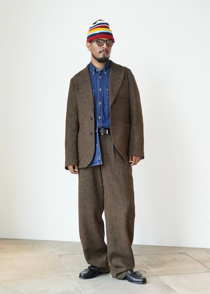 アイルランド産のドネガルツイードを使用したイタリア製のセットアップ。耐久性のある高級ツイードとも知られるドネガルは軽量でしっかり季節感を出してくれます、寒い季節も温かい空気を逃しにくい特性があるのでこれからの季節に大活躍するセットアップです。