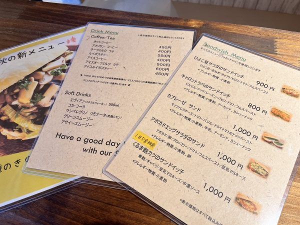 ちなみに、店長さんのオススメは自家製フムスペーストも入った「ひよこ豆サラダのサンドイッチ」、1番人気は「アボカドエッグサラダのサンド」とのこと。